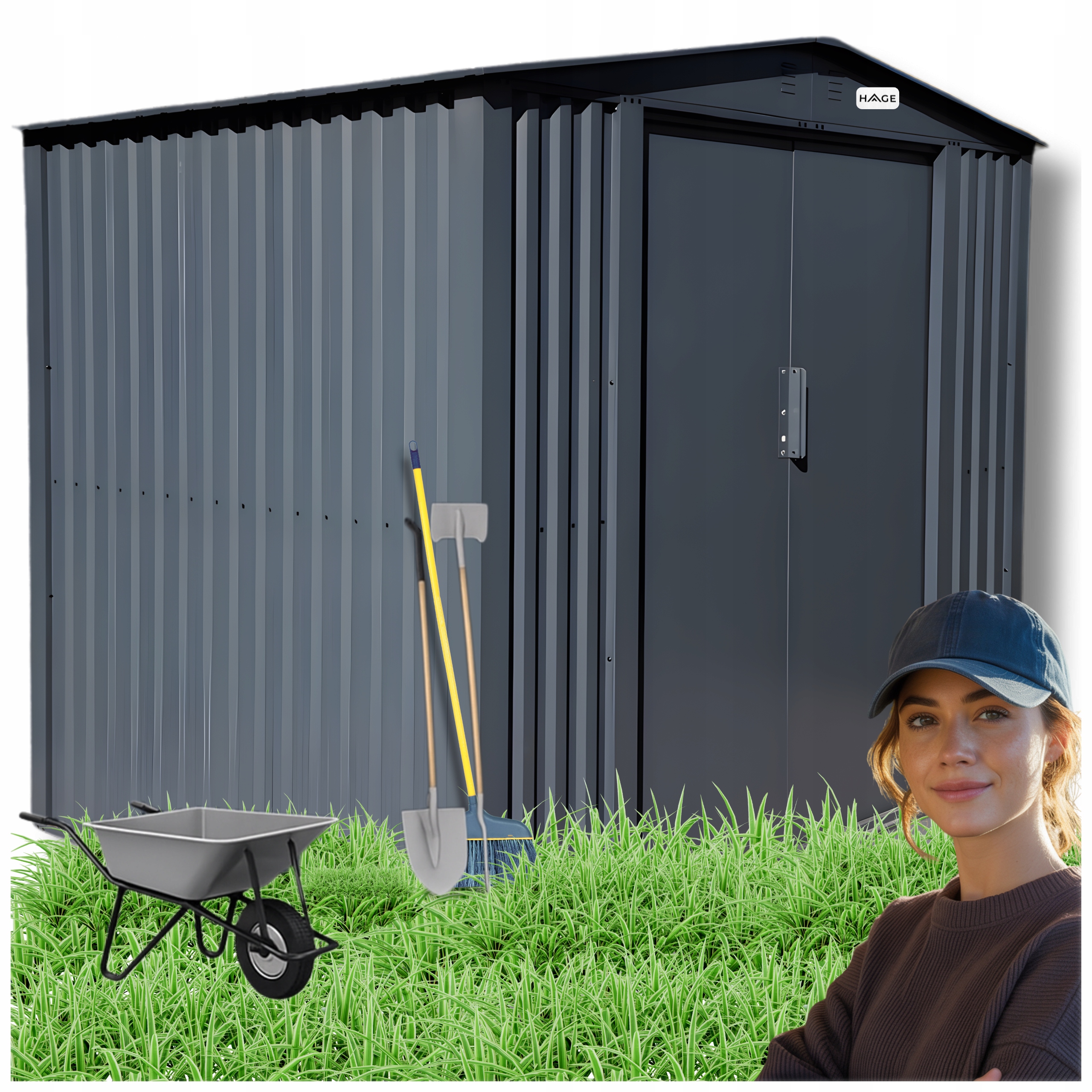 DOMEK NARZĘDZIOWY OGRODOWY METALOWY SZOPA NA NARZĘDZIA GARAŻ 240x180x204cm Producent HAGE