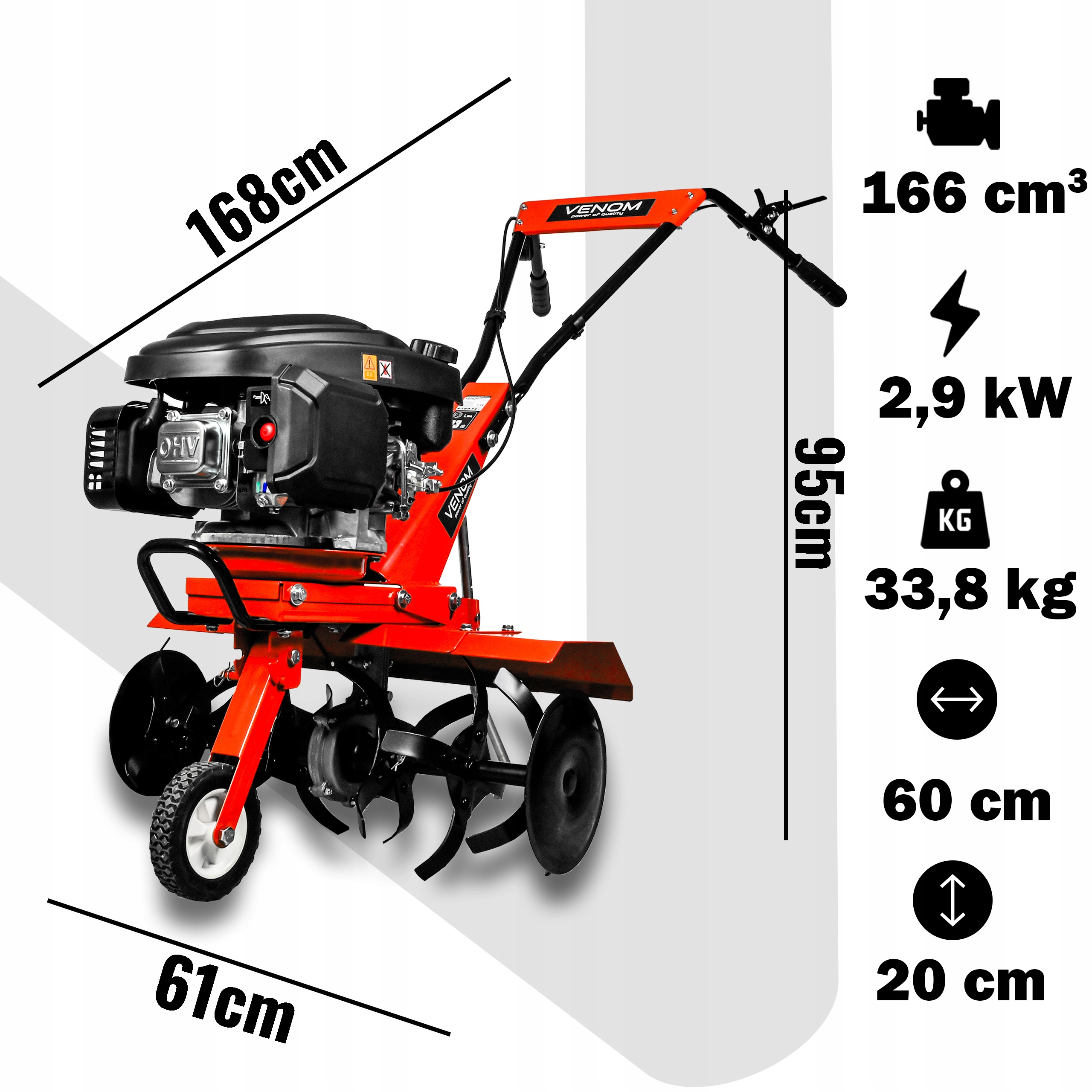 Wybierając glebogryzarkę VENOM, inwestujesz w urządzenie zoptymalizowane pod kątem mocy, wydajności i komfortu pracy. Każdy element – od silnika, przez noże, aż po ergonomiczne uchwyty – został starannie zaprojektowany, aby zapewnić maksymalną skuteczność i niezawodność.